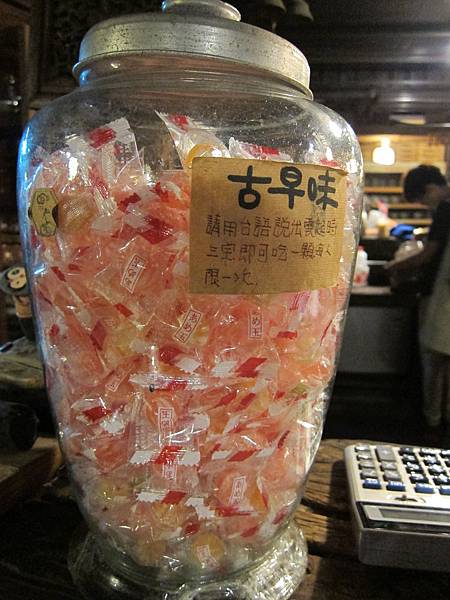▲古色的裝飾讓這裡的用餐環境更添風味,賣的東西也是很傳統,茶品、地瓜、還有一些古早味的糖果、點心,來到這半山腰讓人有穿越時空的錯覺。
