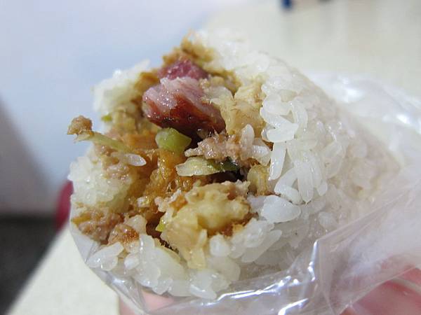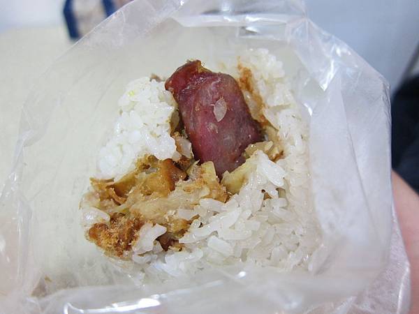 ▲香腸飯糰($35),QQ的飯當外層,酥脆油條,解膩的酸菜,加上菜埔、肉鬆加上多汁香腸,更顯得口感層次多樣化。
