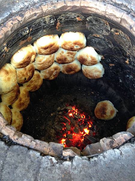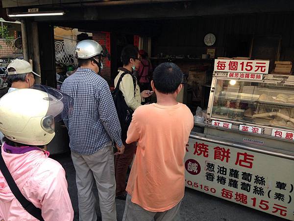 ▲揮汗如雨的老闆烤著燒餅,排隊的大家可是等不及了。與一般燒餅店不同,不是用烤盤,而是烤桶。