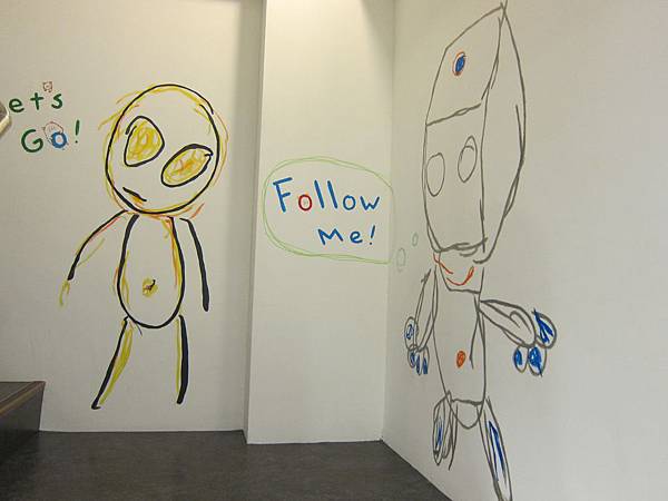 ▲跟著樓梯的阿財圖案上到2樓用餐區。