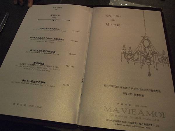 ▲菜單,分為單點、經典饗宴($780)、巴黎味饗宴($980)、風華饗宴($1280)三種套餐可以選擇。