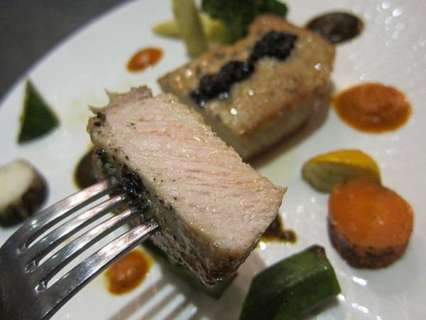 ▲夏季沙拉,多汁的香腸與蔬菜一直都是好組合,吃完前面兩道菜算是熱身完畢,準備等待主餐的到來。
