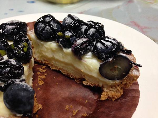 ▲藍莓塔($130),微酸的藍莓咬下一口口水直流阿,外皮一樣是脆得沒話說,在家吃要用個盤子裝喔,以免掉滿地。