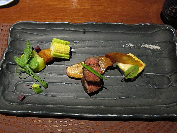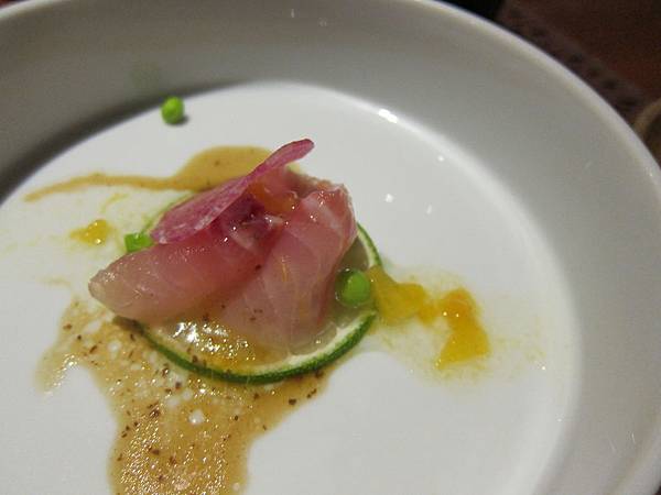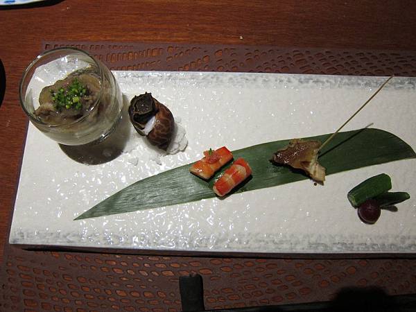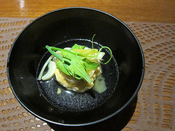 ▲服務生特別說明必須由右吃到最左邊的鮑魚,多層次的海鮮味覺在這一盤完全盛開。