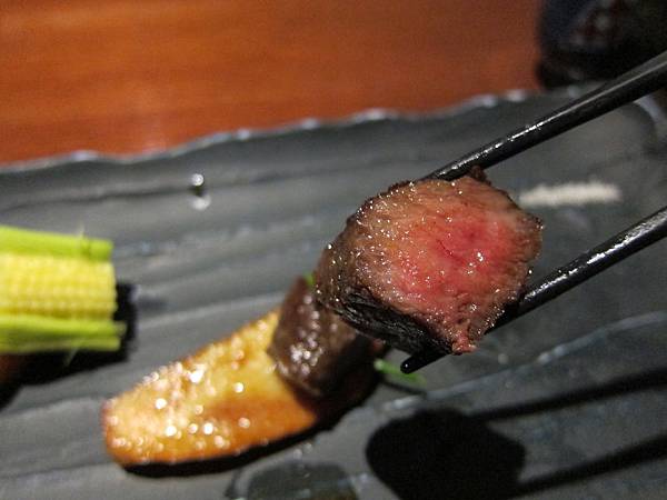 ▲美國牛小排搭配花椰菜醬煎成的餅,鮮嫩多汁的肉塊一入口湯汁四溢,每咀嚼一口都是享受,雖然原味已經很棒了,加點鹽更能提味喔。