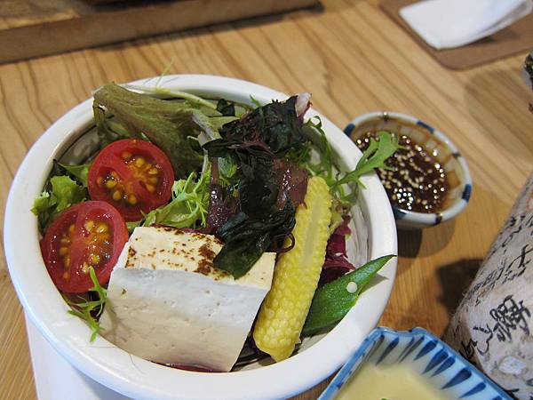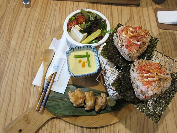 ▲京都風櫻花飯糰($250),附有餐前飲、沙拉以及茶碗蒸,但重點是櫻花飯糰,2顆飯糰包著脆脆口感的海苔飽足感滿上展現出來,看每桌都有這道料理,果然好吃。