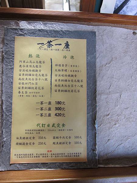 ▲一茶一座180、一茶二座300、一茶三座420,共有三種價格。茶葉也有依些可以選...只是忘光了。