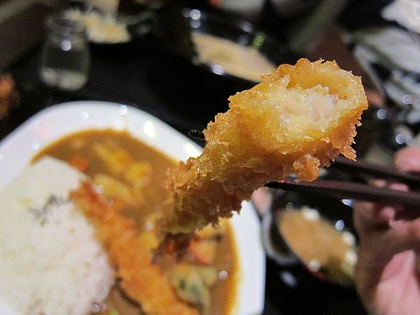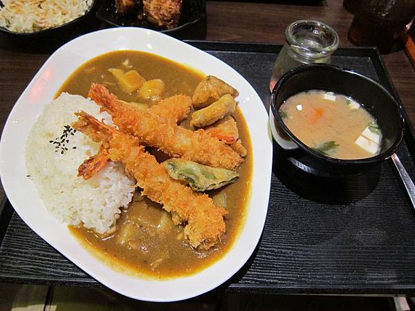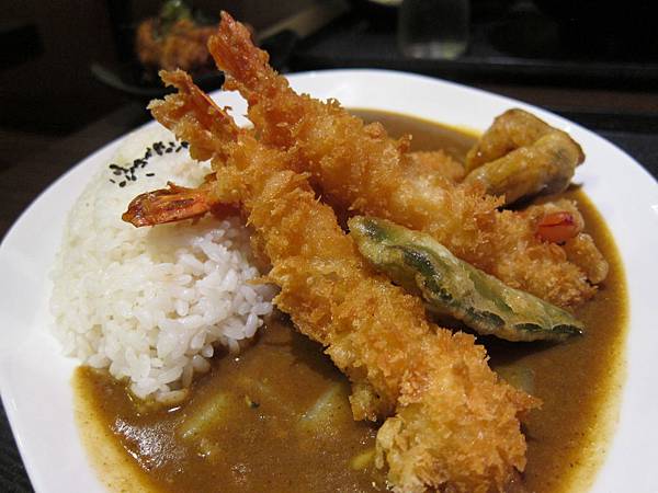 ▲黃金炸蝦咖哩飯($170),將炸蝦沾的咖哩一起吃,脆脆的外皮包裹著Q彈蝦子,炸蝦真的不能放阿,放久了外皮濕潤口感會跑掉。