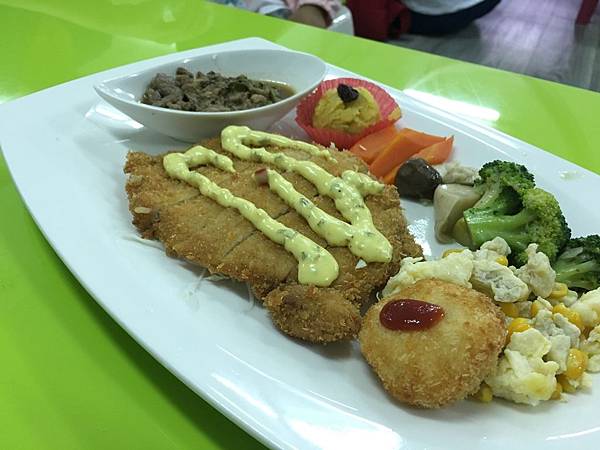 ▲酥炸豬排($350),味道冷了一點,豬排的酥脆也還是有的,基本配菜與豬排淋上一點芥末醬為今天主軸。