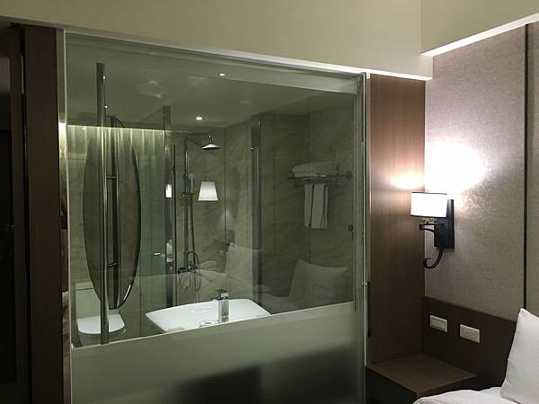 ▲燈愣~今天入住的房型,跟浴室是完全透視的,很開闊的視野,這種出差房型最棒了,還有桌子可以使用,對於差旅人士可說是一級棒。