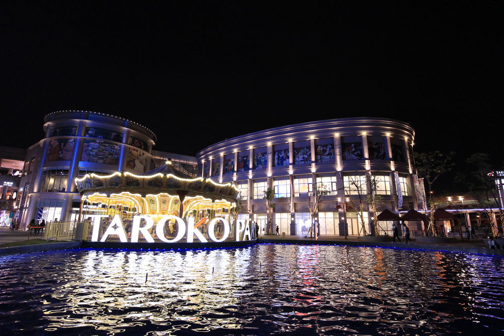▲白天與晚上的大魯閣草衙道各呈現不同的風采,常常有攝影玩家在各個角度取景拍攝這個美麗的樂園,大魯閣不僅是購物中心、遊樂園,也是個相當棒的風景區。