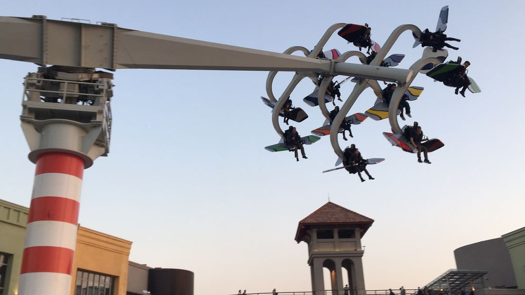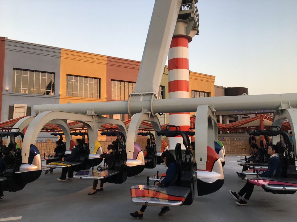 ▲天空飛行家($100),走到樂園映入眼中的就是這架天空飛行家,載著旅客們在天空翱翔看看人們可以在天上翻滾幾圈,當天聽到最高紀錄是30幾圈耶,這根本就是有著驚人的意志力與勇氣阿,翻圈很累。