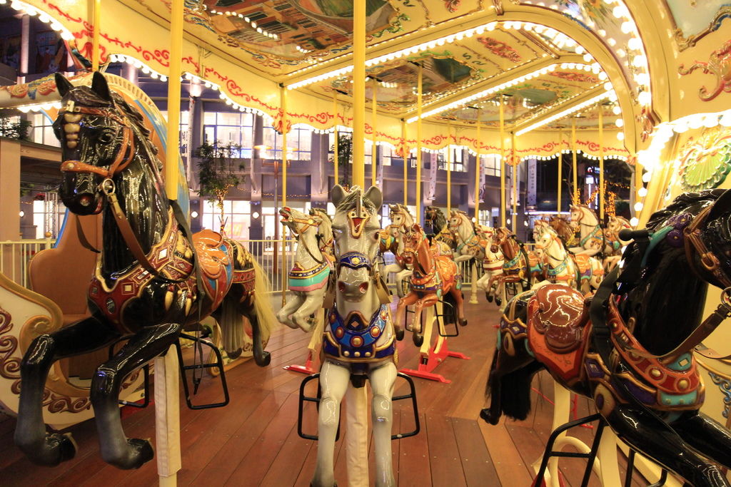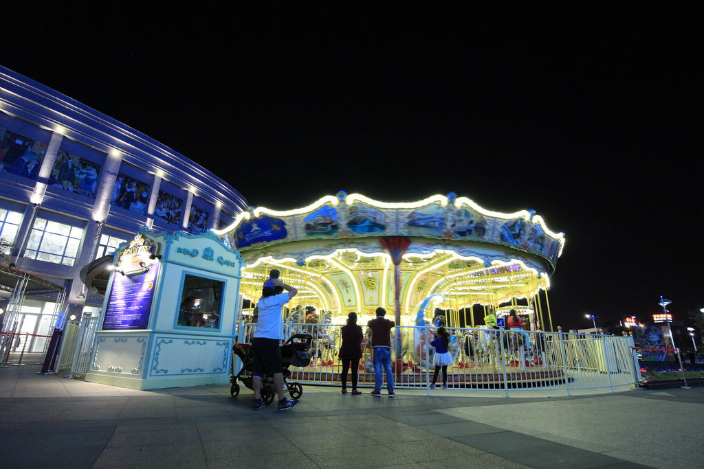 ▲旋轉木馬($40),最後來到夢幻的旋轉木馬,上次坐的時候好像是國小吧,帶小朋友來順便回味一下初戀的感覺(誤),身高不滿90公分的小朋友是不能獨自坐在馬上的喔,如果要拍照可以等空檔拍出美美的木馬照。