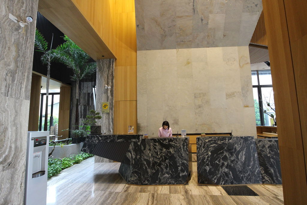 ▲1樓大廳明亮又充滿綠意,一角的位置有提供雜誌及旅遊書籍,來二次因為都是嘉義住宿親子網站的票券就沒有附贈早餐,都是自己步行去市區買。第一次來是走路到市政府對面的樂檸漢堡餐廳加上忘記是哪一間的嘉義火雞肉飯解決。第二次來就跑到圓環那邊買生意超好的火婆煎粿,另外不想外出吃晚餐的朋友,我推薦你們點熊富手打烏龍麵館外送到旅宿來,這家很好吃耶,下次在到嘉義我一定要內用一下。
