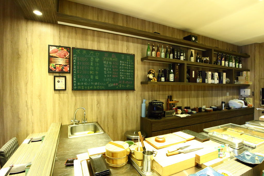 ▲1樓屬於壽司吧台區,現場有師傅當場捏壽司給客人享用,板前手做料理共有4種套餐可以參考,春樂套餐($880)、夏沐套餐($1380)、秋谷套餐($1880)還有頂級和牛套餐($2380)。每次來店裡所點的套餐即使是相同的名稱,店家也會安排不同的料理給客人驚喜的感覺。吧檯上黑板寫著推薦清單,店內最招牌的品象當然首選板前套餐,不喜生食的朋友也是有各式鍋物可以挑選。