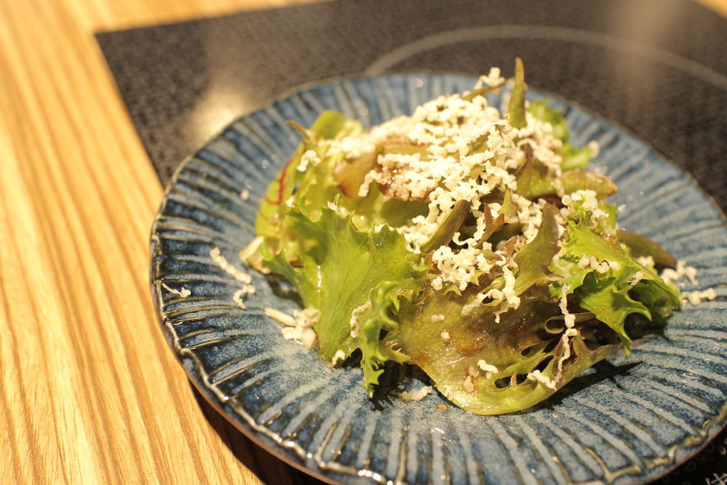 ▲油醋沙拉搭配切達乾酪,酸甜鹹組合而成的開胃菜,厚重的乾酪味加深了這道鮮蔬的力道,讓平凡無奇的蔬菜以濃厚的味覺搶占了先機,吃完後馬上期待著下一道料理的到來。