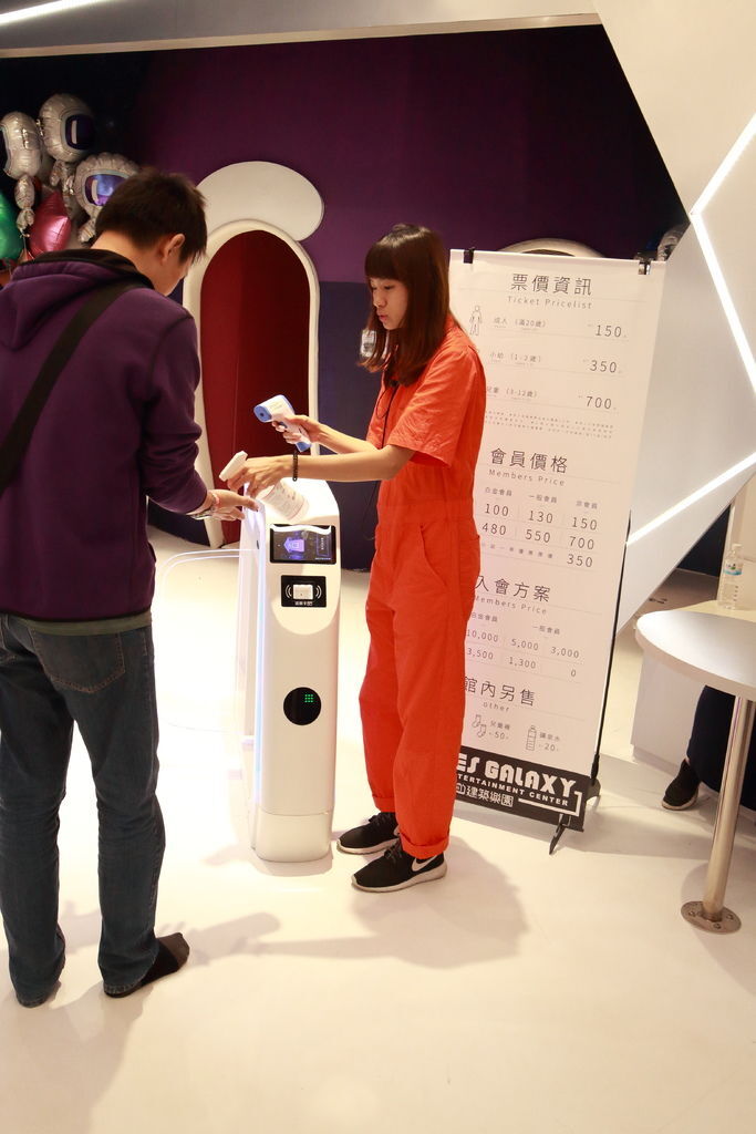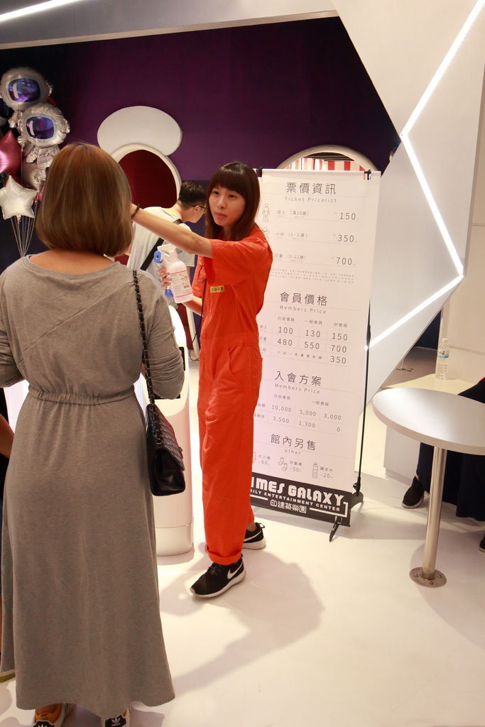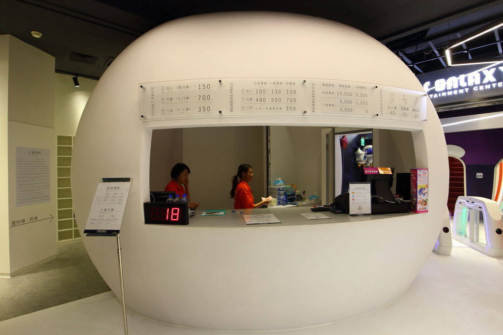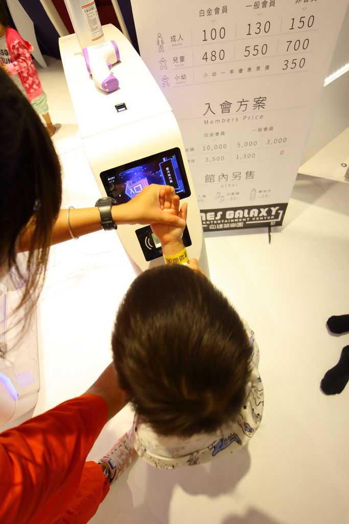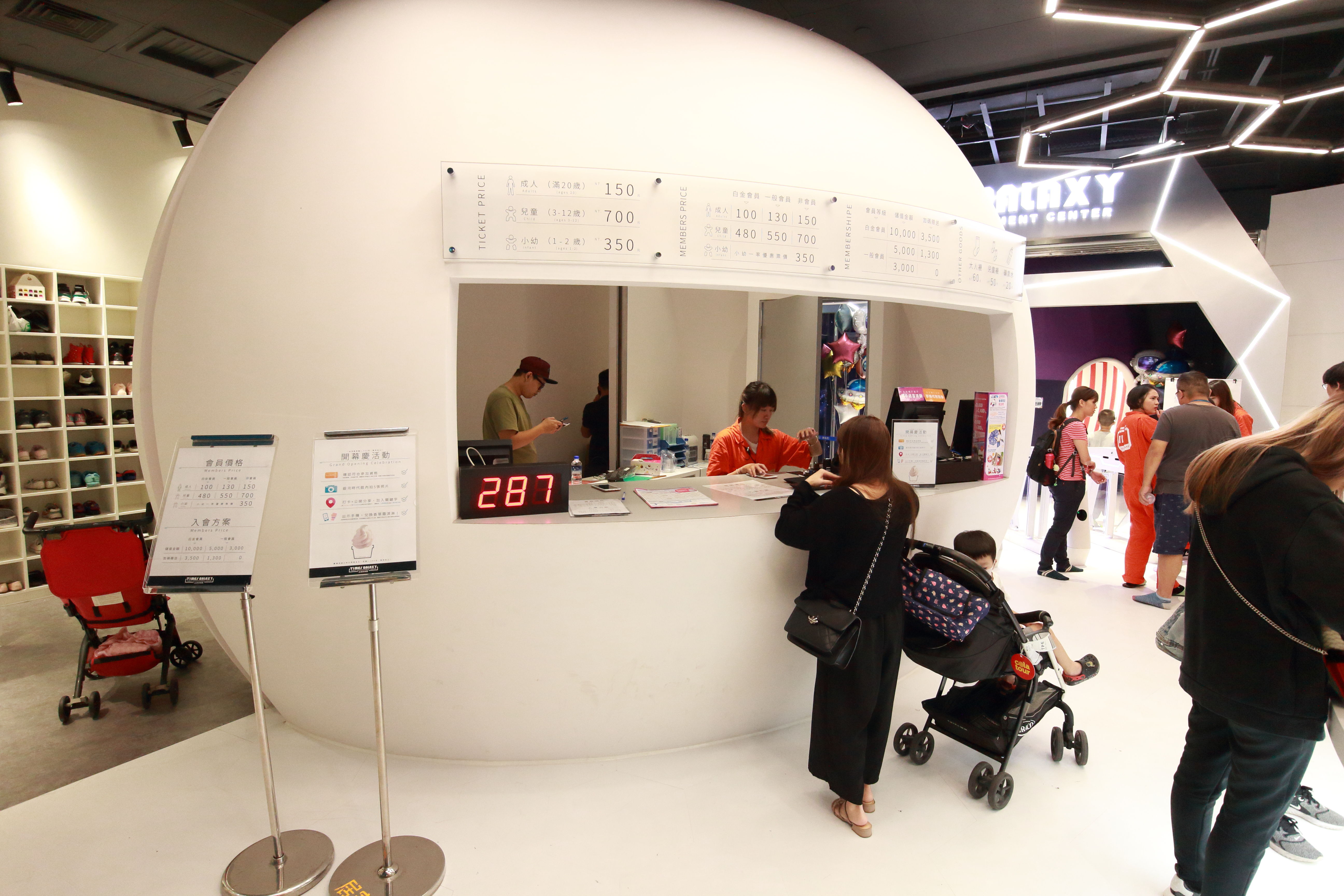 ▲從手扶梯下來就看見建築樂園的指標,B2右轉就被這銀河時代總部抓住眼球,也太科技了,開幕當天人潮就爆量,入口大廳盡是詢問的家長,大家都想一探這個佔地300坪的巨大空間賣什麼把戲。