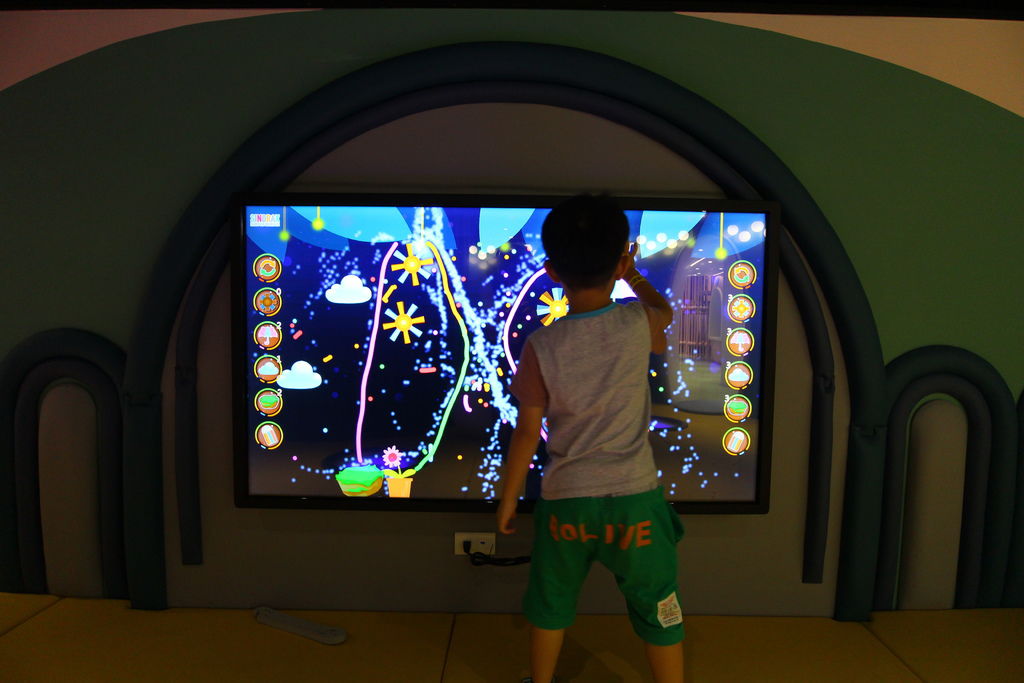 ▲時代城/光影實驗室,進到裡頭先來到光影實驗室,別小看這台電視,裡面的遊戲完全讓小孩沉浸其中,不管是澆花的園丁,滅火的消防員或者是供水餵食的管理員,超好玩的遊戲都在裡面。