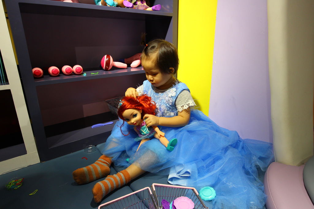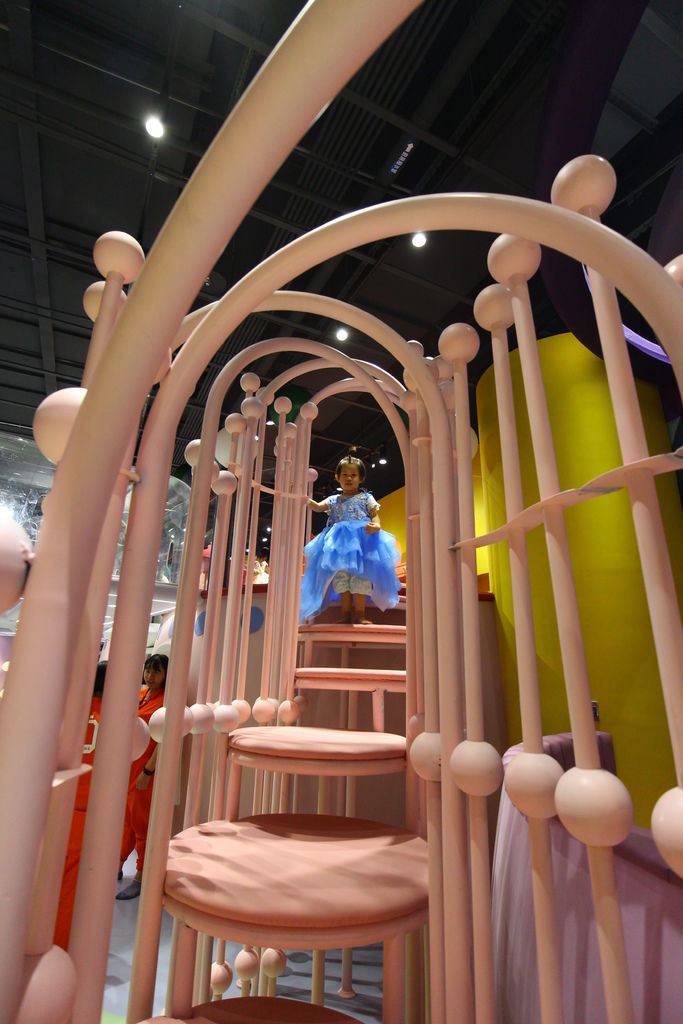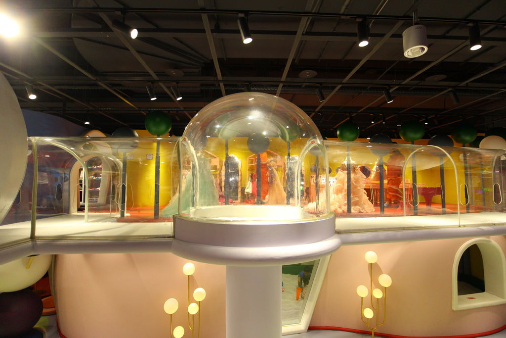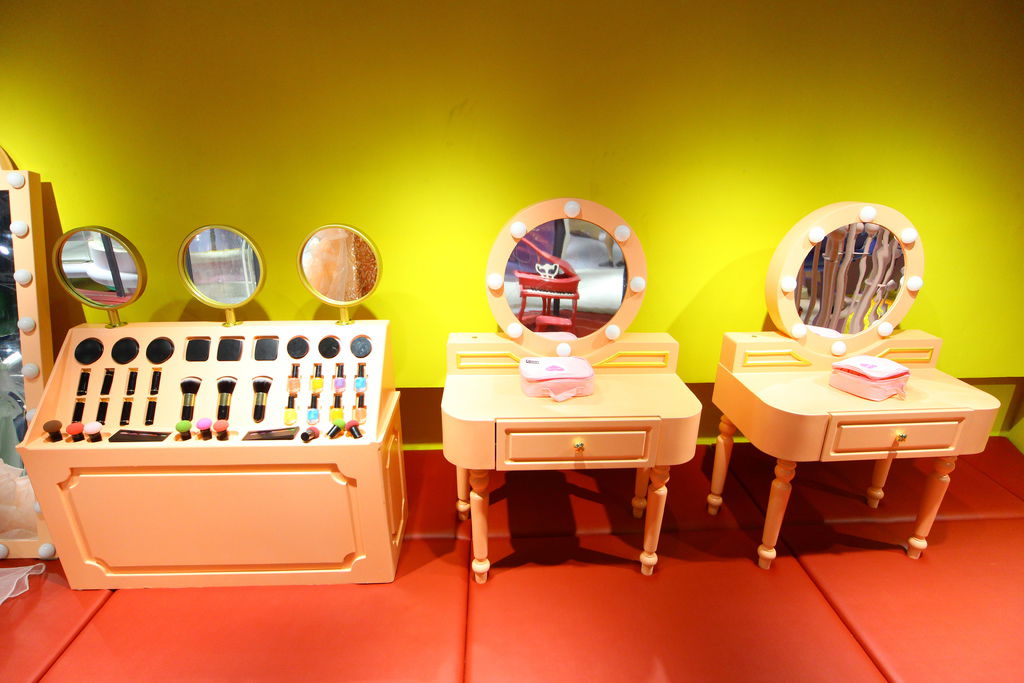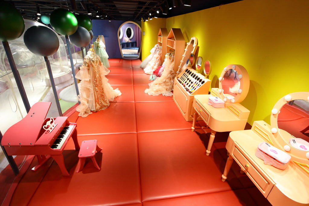 ▲時代城/公主時裝區,從空中隧道來到公主時裝區,擬真的化妝台、非常高級的定制禮服、華麗的環境,讓太空小旅人們開啟時尚公主模式,化身網美征服銀河時代。另一側則可以幫裡頭的娃娃設計髮型打造獨一無二的銀河公仔,達到無與倫比的成就感。