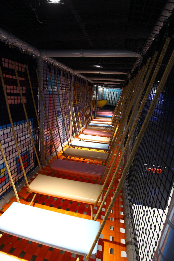 ▲時代城/空中隧道,這個空中隧道超狂,以1、2樓設計的透明空中隧道可以任意穿梭探索「時代城 」的各大遊戲區,裡面的關卡堪比百戰百勝裡面的魔王迷宮,小小朋友光是穿梭隧道就玩得不亦樂乎,在裡面的尖叫聲此起彼落。