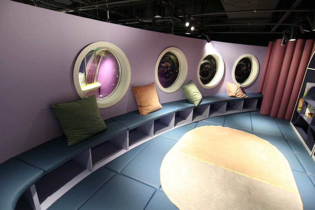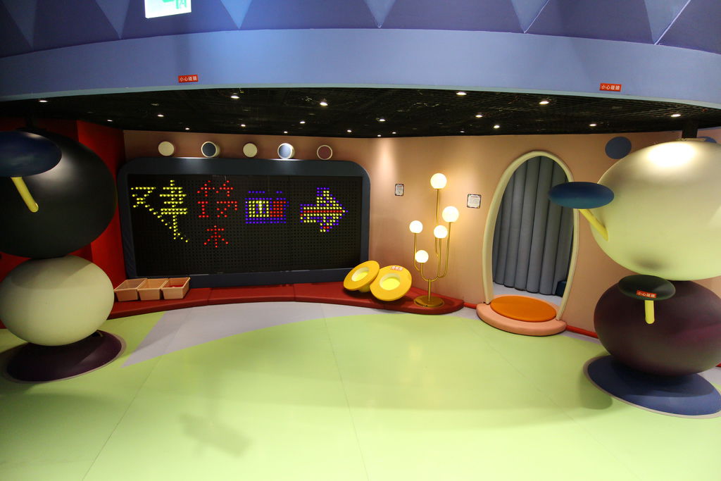 ▲時代城/知識補給站,與一般遊樂園不同的是這裡竟然還為了閱讀打造了共讀區,願意提供空間給家長與孩子共讀就給推,玩累了可以在這邊跟孩子讀一本書再繼續探索銀河。