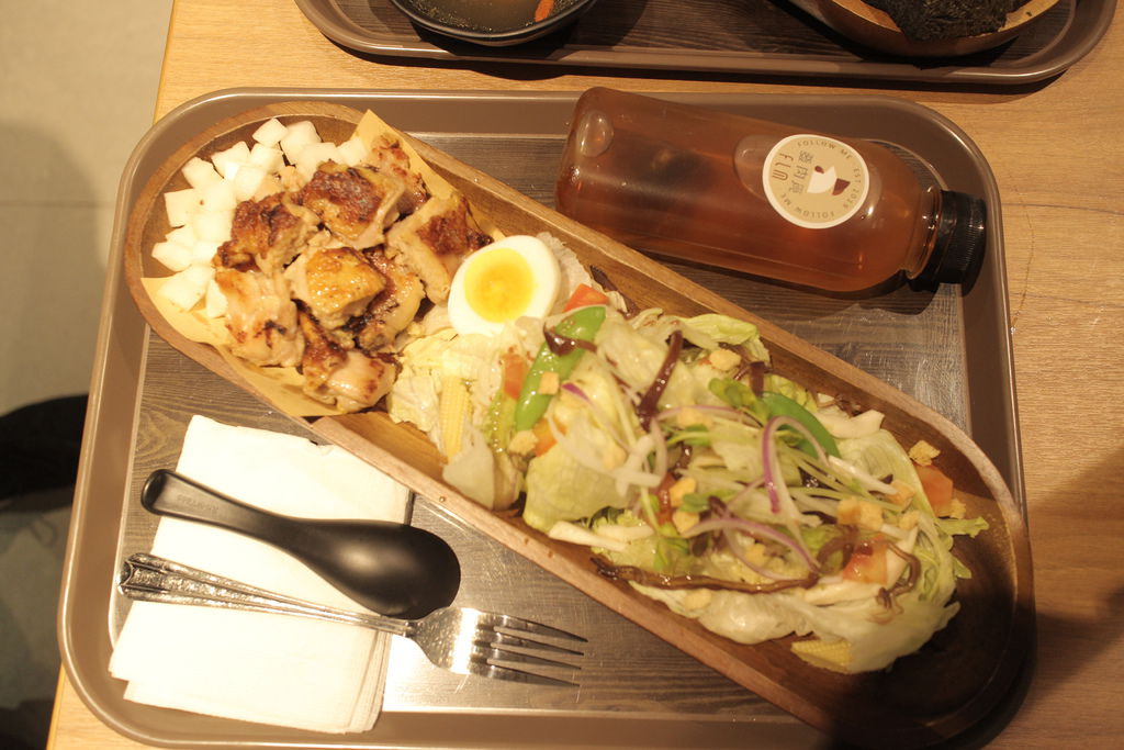 ▲今天2人點了2個定食,一份炸物。定食主要有主菜、主食和附餐。主菜單然是看你喜歡什麼,主食則是穀飯、麵包及鮮蔬,附餐則有冷泡茶和清雞湯可以選擇。在這看他們料裡真的想買個肉品回家自己料理,看起來簡單又方便,當然這邊的簡單是指看起來.....