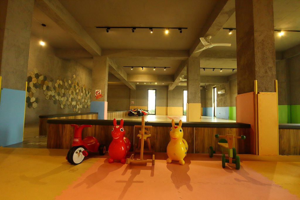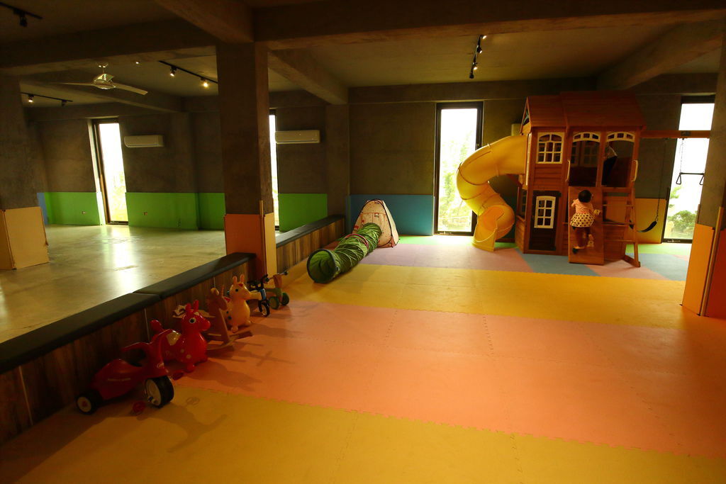 ▲1樓有小朋友瘋狂的遊憩場,一邊是開車一邊是滑梯跟廚具,想要動態就去玩車跟滑梯,靜態就可以玩扮家家酒,小一點的也有小小車可以玩,算相當周到。隔個一道就是大人的撞球場跟桌球桌,要看顧小孩也不用擔心,幾乎都在視線內。