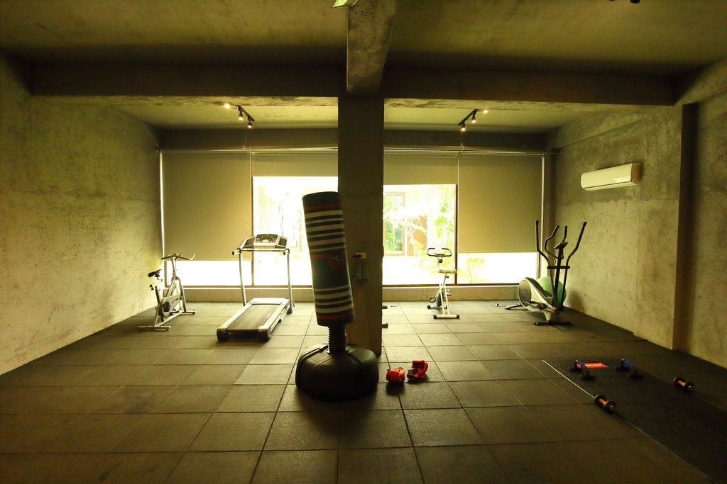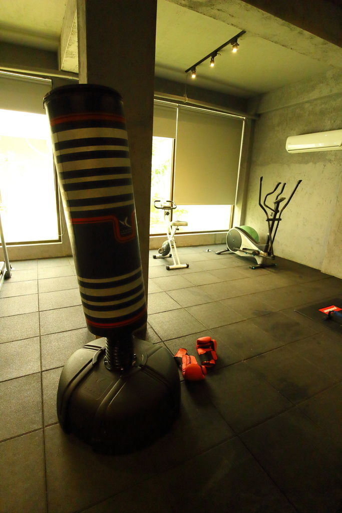 ▲另一側則是健身房,跑步機跟拳擊都有。