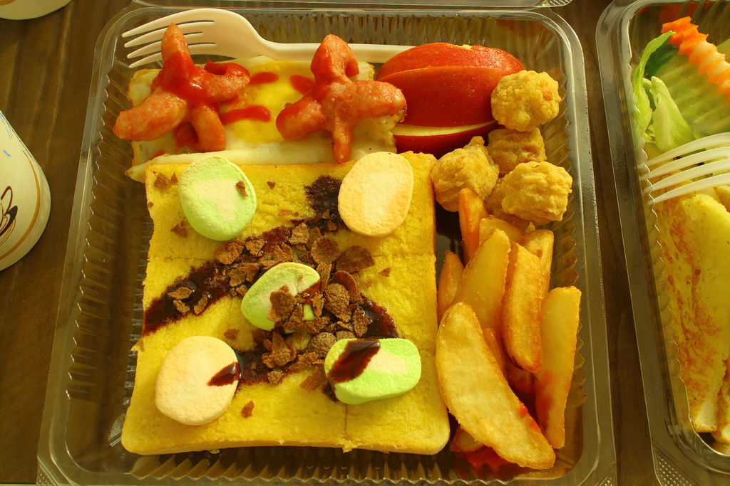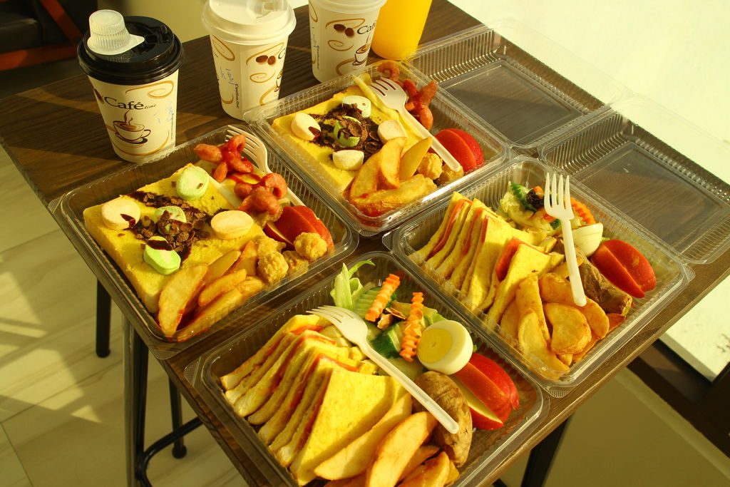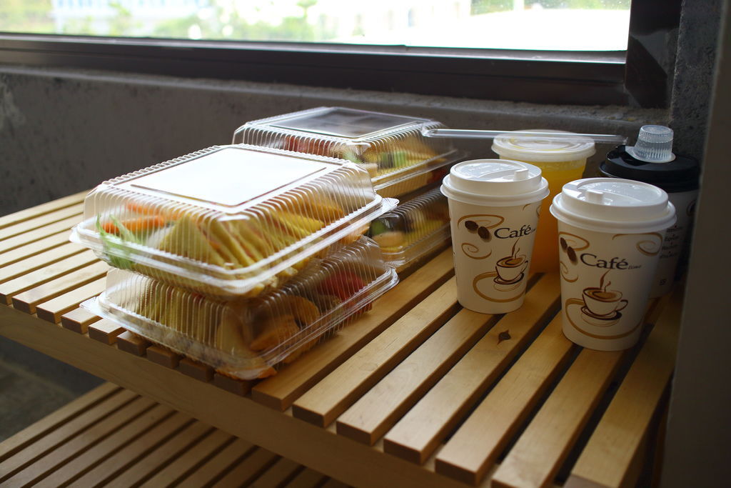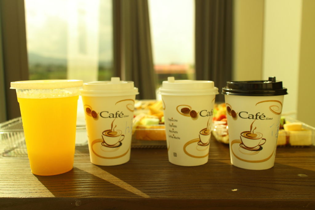 ▲現在聖都VILLA餐廳沒有使用,都將早餐送到門口,再由住客自己開門領取,早餐也很豐富,生菜、麵包、飲料都有,我們二大二小這樣吃起來是覺得太多,飲料有咖啡、果汁跟豆漿可以挑選,早餐則有兩款,都非常好吃。