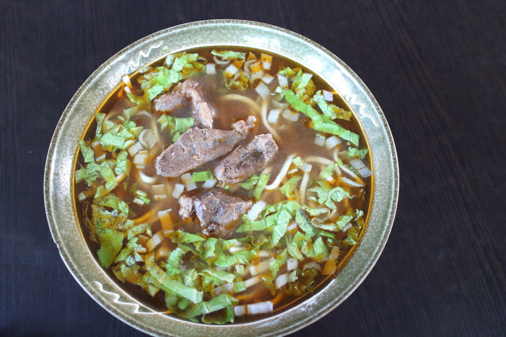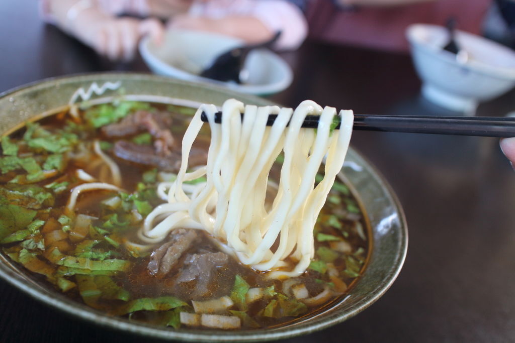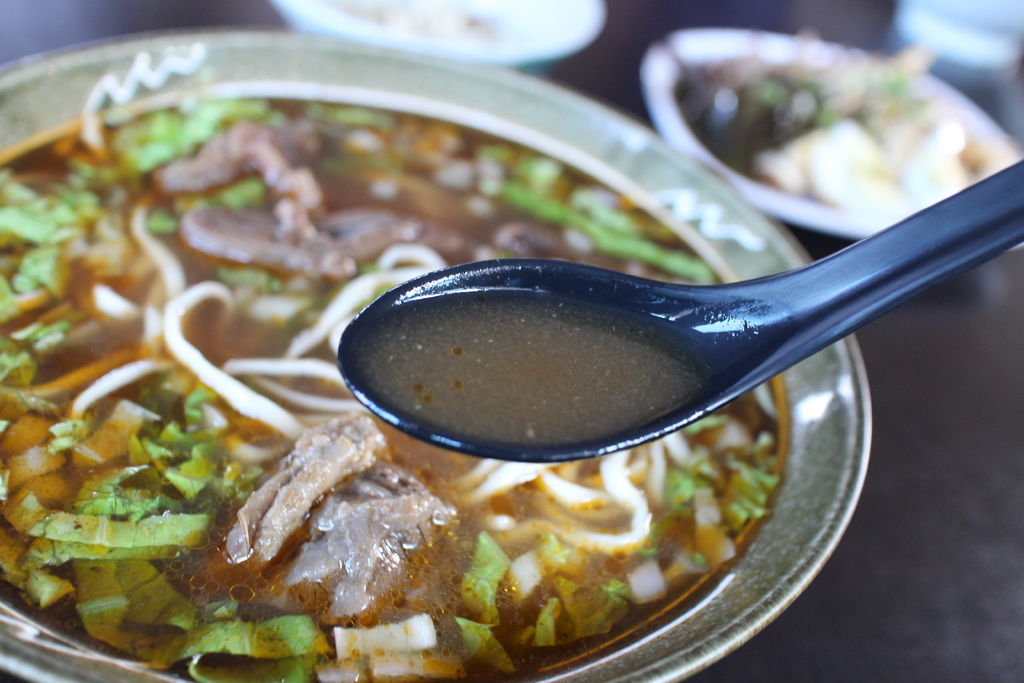 ▲招牌牛肉麵($130),店家的招牌牛肉麵,以130的價格來說,還是張家牛肉麵略勝一籌。話說如此,這裡的牛肉麵也是很棒,肉塊夾雜著牛肉麵的湯汁,大把的白菜跟濃醇的湯頭,恆春牛肉麵還是要推一下。