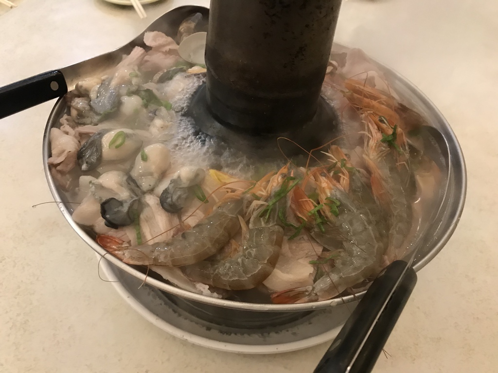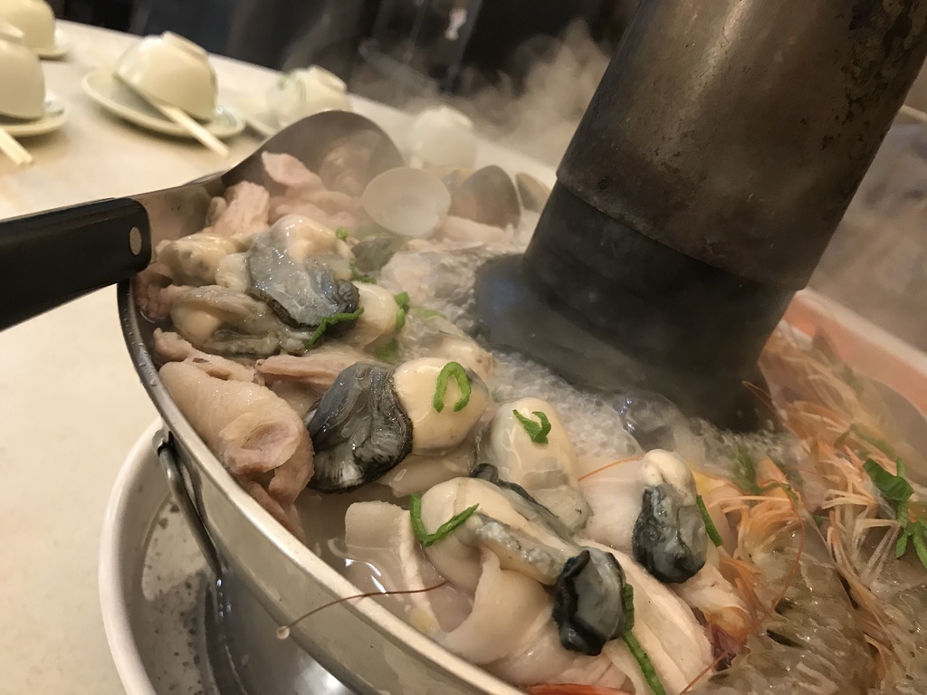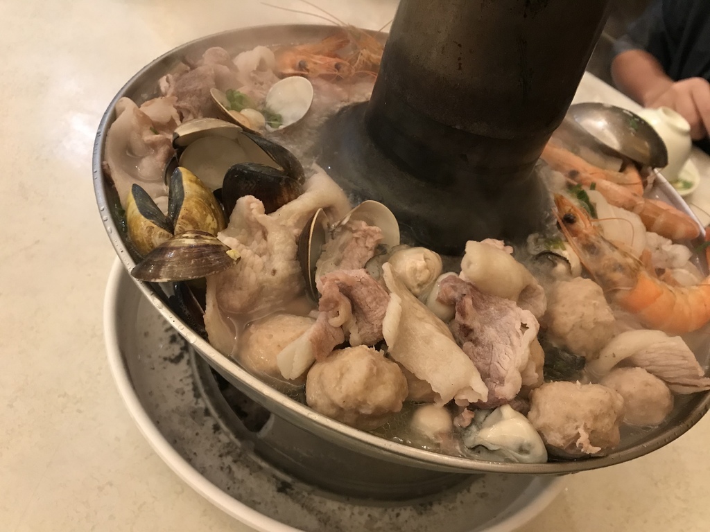 ▲酸菜白肉鍋($780),配料有酸白菜、五花肉、貢丸、凍豆腐、魚丸,一開場就來個這麼浮誇的鍋物,配料都從鍋裡滿出來,滾燙的熱湯冒出陣陣香氣,一上桌飢腸轆轆的大家馬上就食指大動。