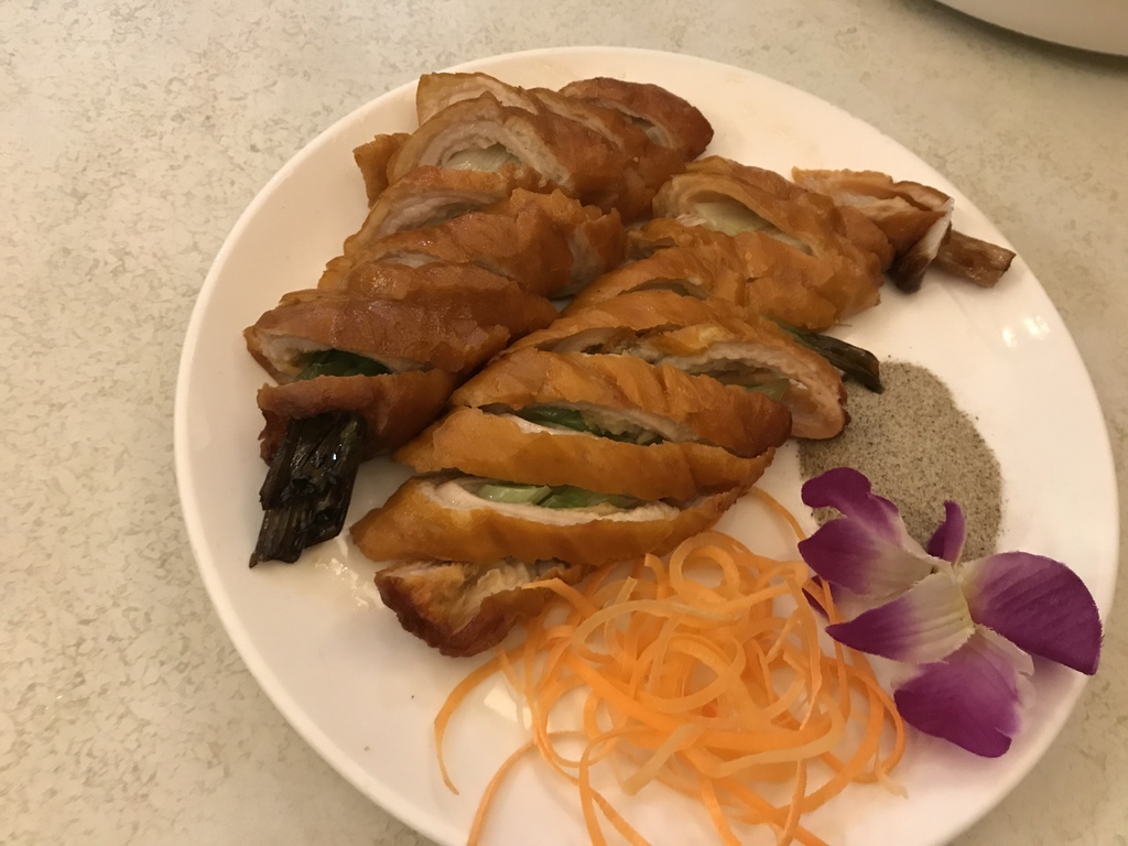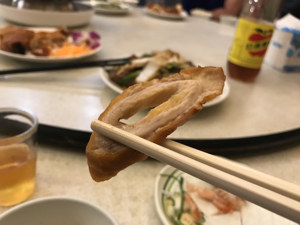 ▲脆皮肥腸($330),外脆內滑潤的肥腸是聚餐的上好下酒菜,咀嚼著充滿香氣的豬腸配著氣泡飲料就是今晚最享受的時刻。