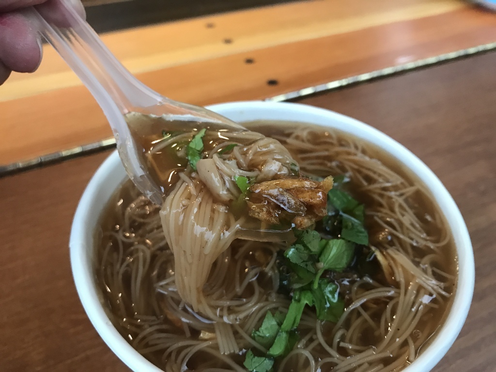 ▲綜合麵線($50),大腸+虱目魚羹的組合, 虱目魚口感Q彈,大腸軟嫩香甜,配著麵鮮羹一起吃會想再來一碗,下次來的話要點三兄弟,試看看小捲跟麵線羹的組合。