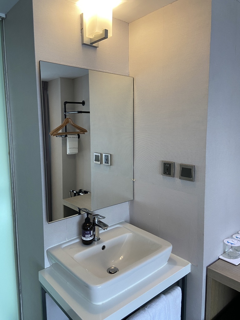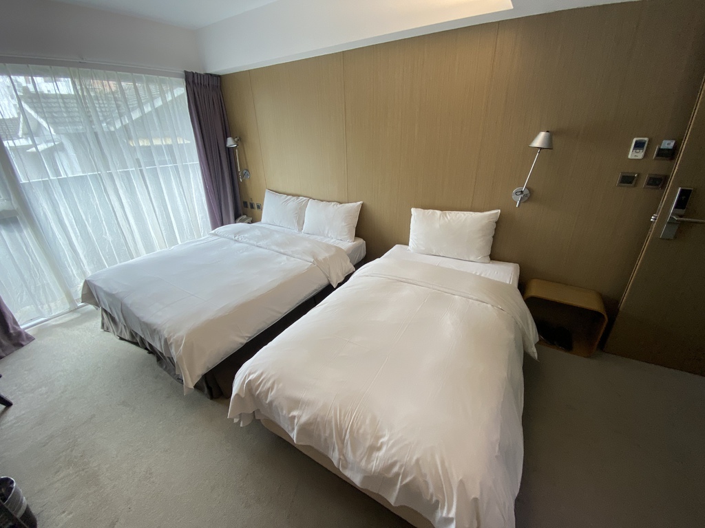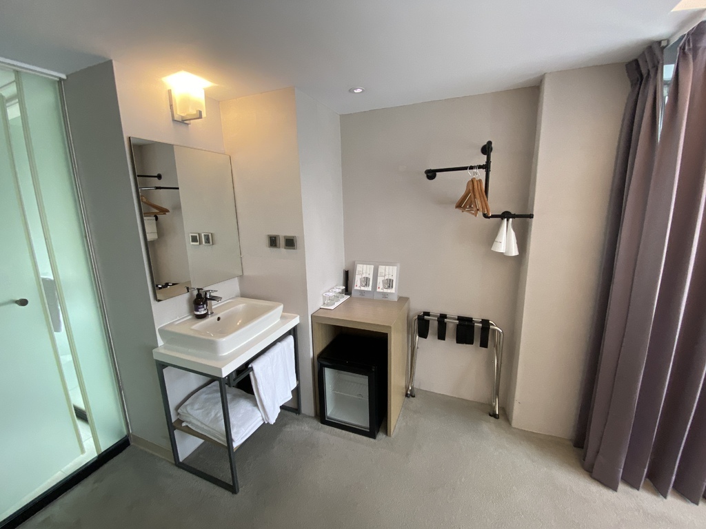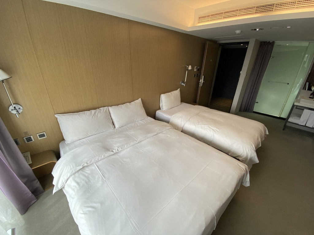 ▲當天在文承億文旅台中鳥日子的房型是一大床一小床,大小適中,但對小朋友來說似乎不過癮,不像是郊區的有棵樹、伯朗三號民宿這種有空間可以跑來跑去,也沒有浴缸可以泡澡玩水,但市區就是滿足這種文青風格的享受啊~