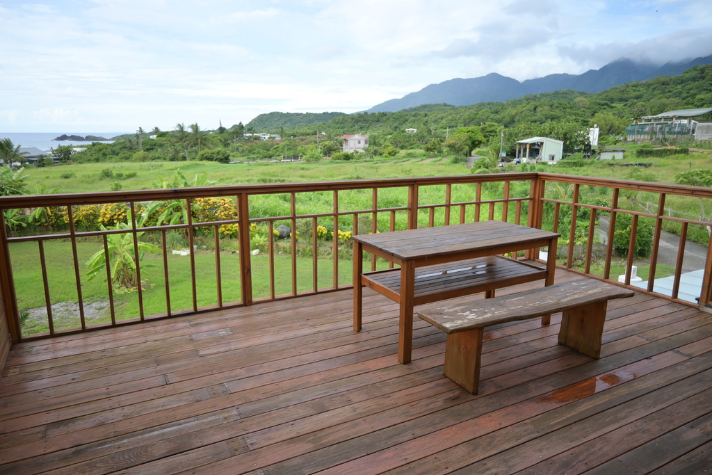 ▲1樓有大廳以及廚房和一間房間,這裡的早餐要自理,食材、鮮奶民宿都有提供,唯一擔心的是大家同時料理比較麻煩,我們是刻意晚點才起來煮,避開跟大家共用廚房的時間。附近的風景很不錯,窗戶外頭雖然是台11線與台30線的交叉路口卻沒有車子的吵雜聲,窗外風景優美,這邊距離海邊很近,對面就是長濱觀景台,是小朋友玩水玩沙的好地方,只是遇到太平洋又適逢颱風過境,海邊戲水一定要特別小心。