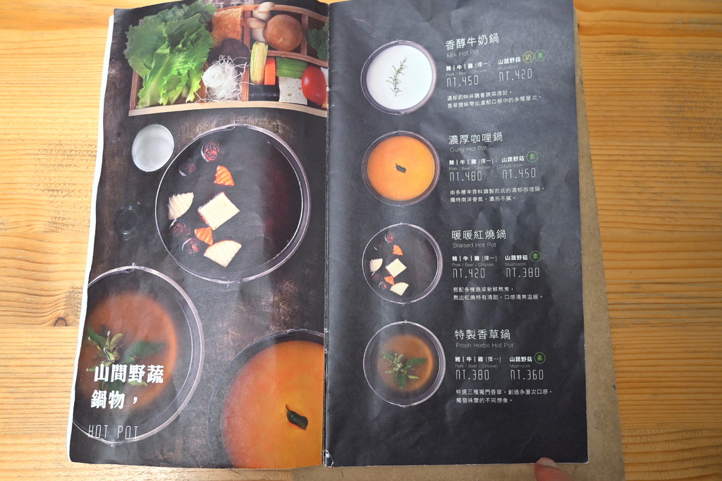 ▲菜單,有照片也有點餐用的單子。火鍋跟定時都大約400上下。飲品可由紅茶、烏龍茶、美式咖啡及今日果汁擇一,另外還有他們的小點心也非常好吃喔。