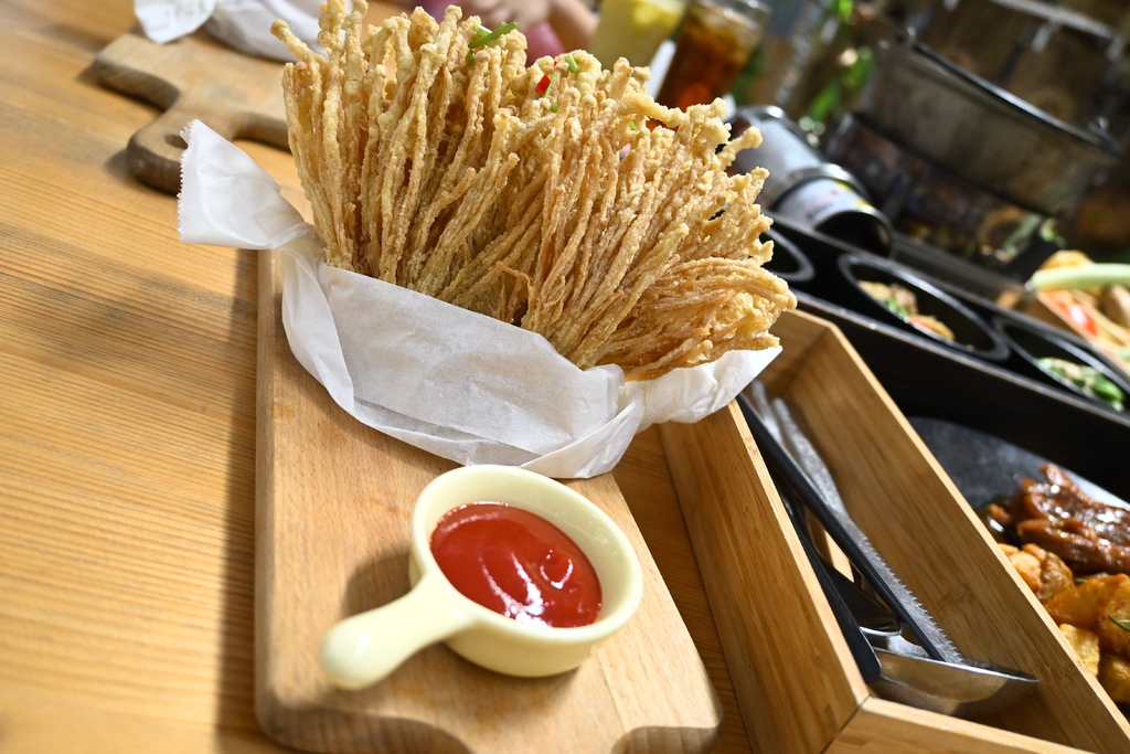 ▲金針菇天婦羅($120),一上桌就覺得好像後宮甄環傳用來欣賞的紅珊瑚,這道金針菇天婦羅好好吃阿,咬下的瞬間脆感爆發,這個再點個兩三份我也可以。