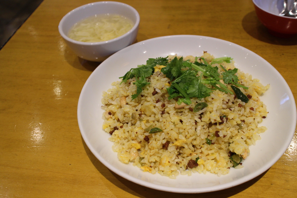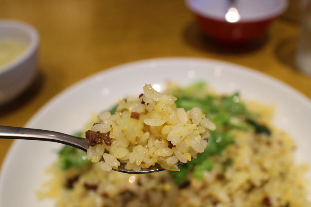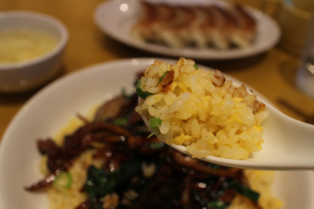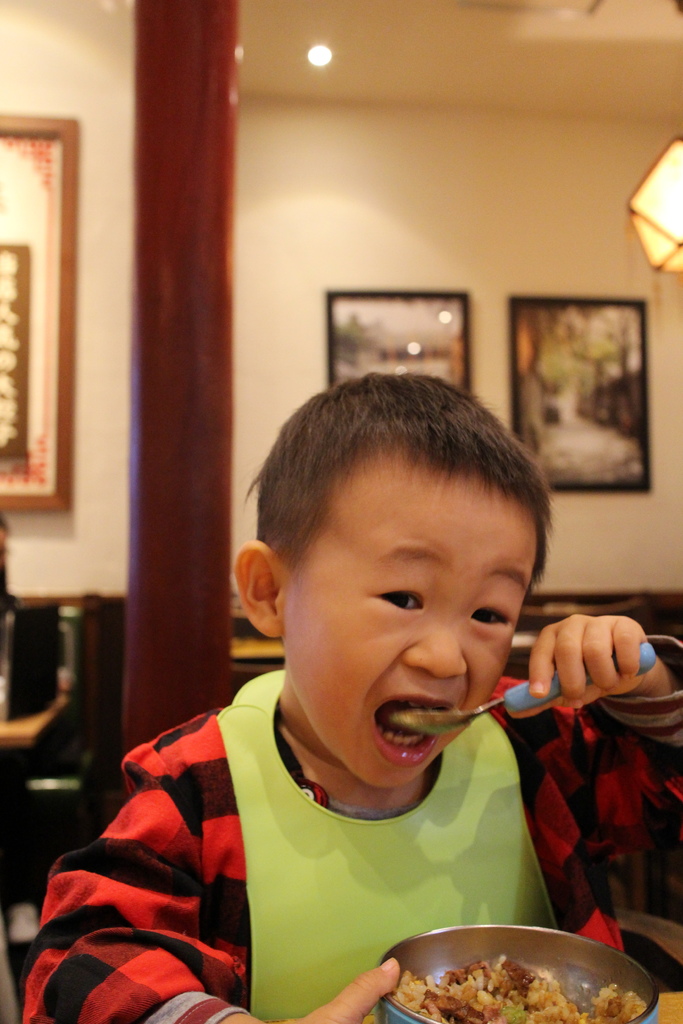 ▲中午在巨蛋旁吃炒飯料理,紅虎的炒飯與煎餃都非常好吃,粒粒分明的炒飯都有蛋香裹在飯粒,就連小朋友都吃得津津有味。