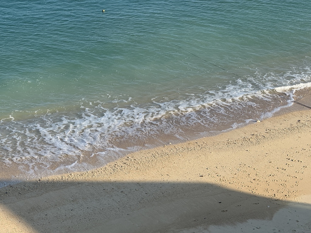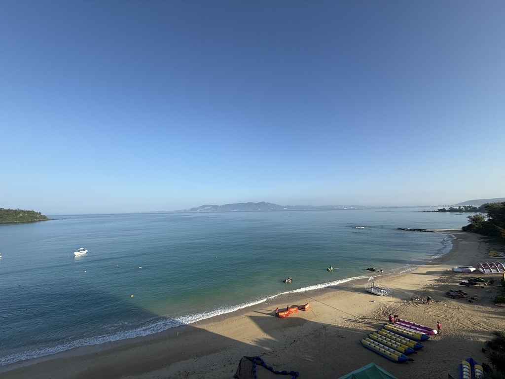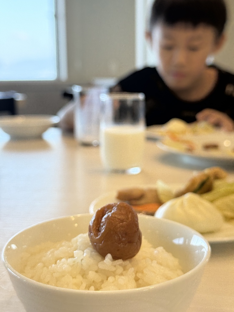 ▲清晨從金秀喜瀨海灘飯店醒來,拉開窗簾,映入眼簾的是一望無際的大海,浪花輕拍沙灘,幾個玩水的身影在陽光下嬉戲。這樣的景色實在誘人,讓我們也忍不住想立刻跳進海水裡。飯店的早餐簡直是旅程中的驚喜,尤其是白飯,飽滿香軟,搭配酸甜的梅子,這道簡單卻精緻的滋味,早就想嘗試,今天終於實現了。吃飽後,我們漫步在飯店前的沙灘,海風徐徐,腳踩細沙,愜意得像是在一場夢裡。然而,小朋友對飯店戀戀不捨,尤其是那片讓他們玩得不亦樂乎的海灘。經過一番討價還價,才終於達成協議:約好時間出發,下一站,前往期待已久的美麗海水族館。這一天的開始,充滿了陽光和幸福的味道。