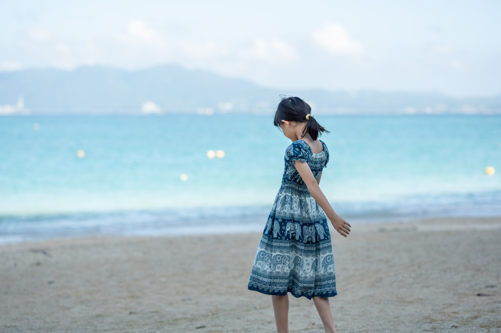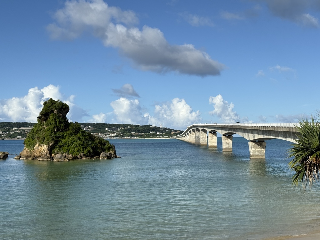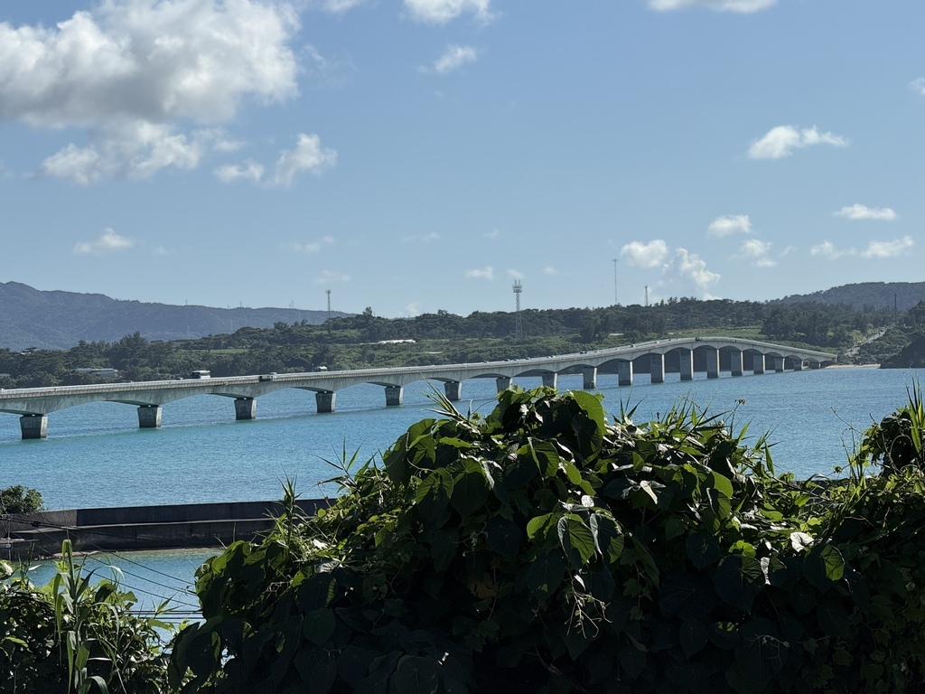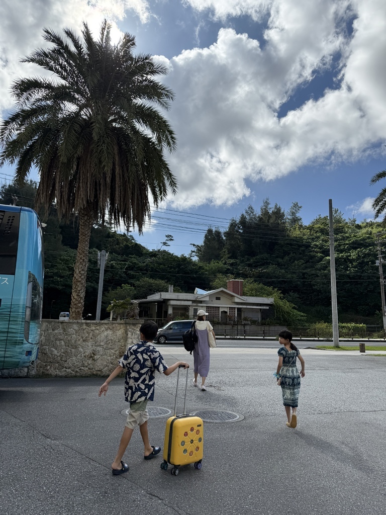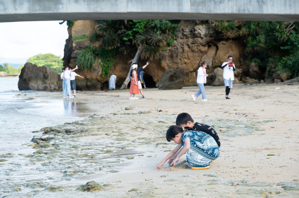 ▲回程途中,我們特地停在古宇利大橋南端的觀景台稍作休息。這裡視野絕佳,小朋友玩得不亦樂乎,踩沙、踢水,無憂無慮地享受著清澈海水與微風輕拂。遊客不多,氣氛相當悠閒,停車也很方便,是個放鬆的好地方。不過,因為晚上要趕回市區還車,我們不敢耽擱太久。踩踩水後便匆匆啟程,開始了90公里的返程之旅。一路上,腦中反覆盤算著加油站的位置與還車的時間,雖然有些緊張,但回望這趟旅途的美景與回憶,疲憊中也多了一絲甘甜。
