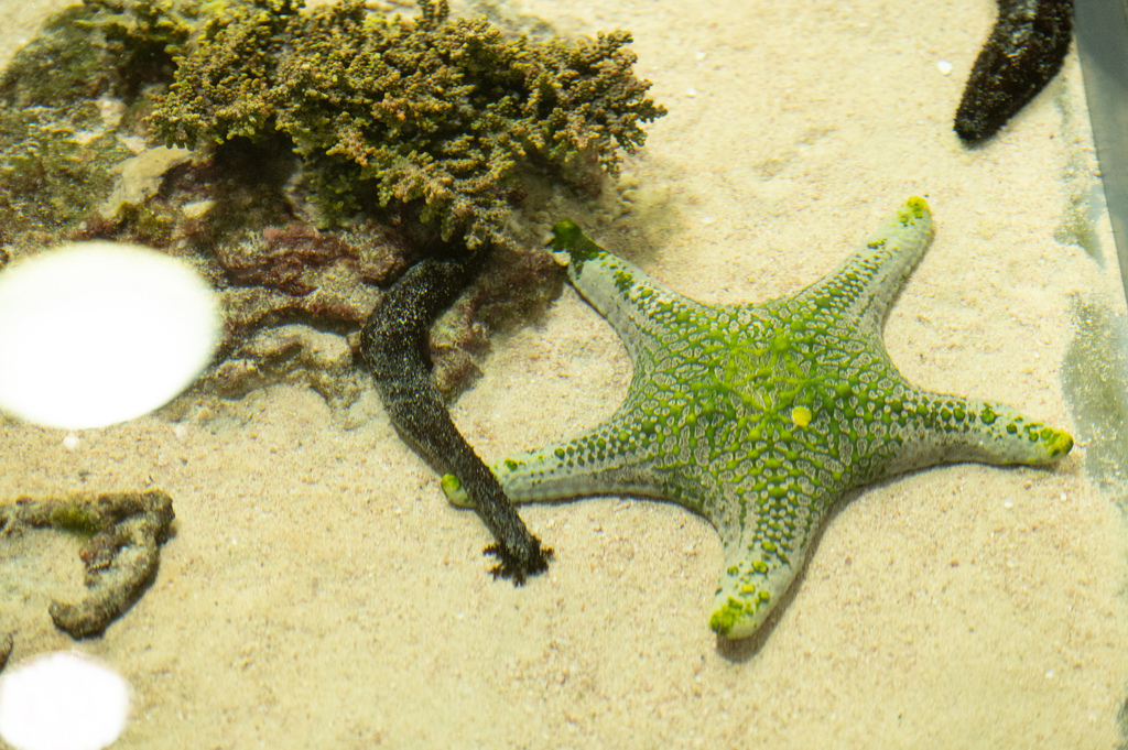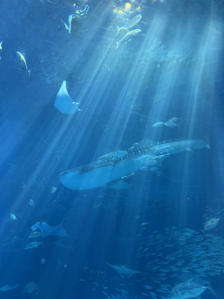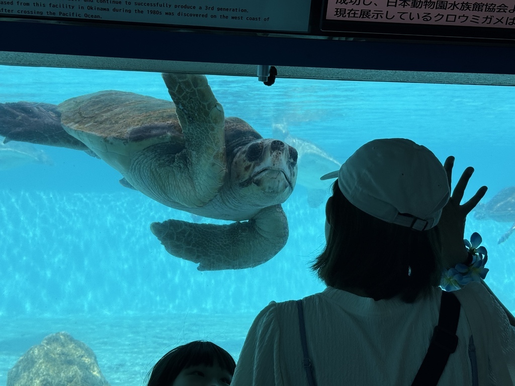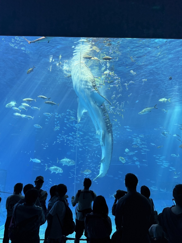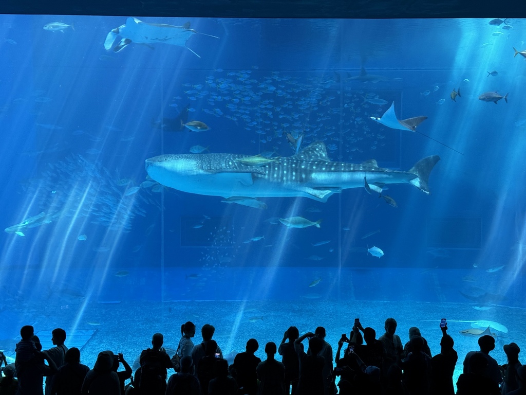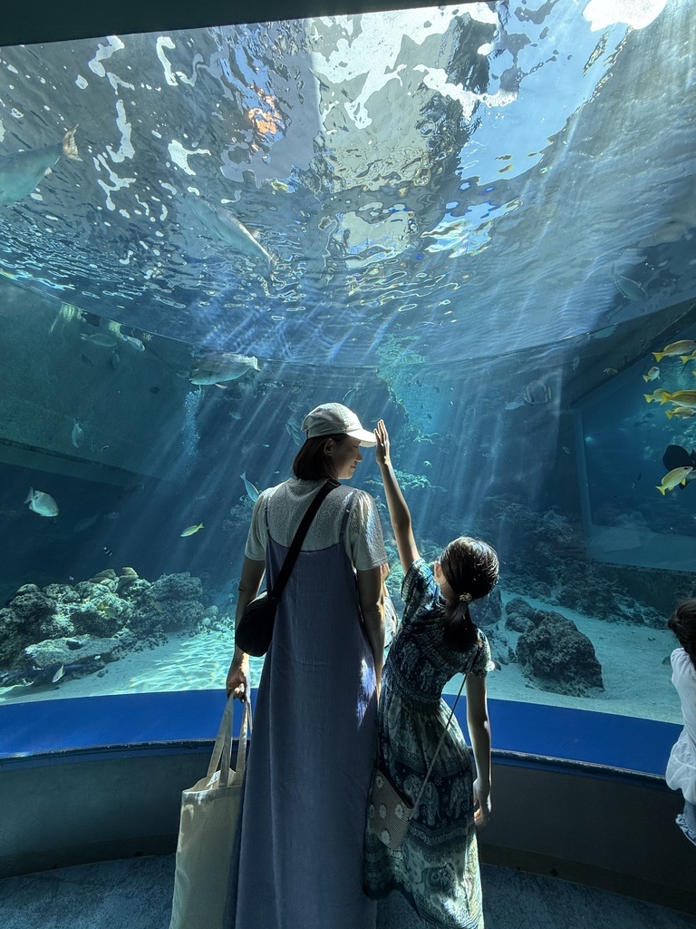 ▲抵達沖繩美麗海水族館的第一眼,就被入口處的皮卡丘裝飾吸引,彷彿在熱情地歡迎我們的到來。踏進館內,最期待的重頭戲就是鯨鯊展示區!這裡的鯨鯊從1995年3月起開始飼養,目前保持著全球最長的飼養紀錄,並且仍在不斷刷新,讓人佩服。水族館雖然規模不大,但內容相當豐富。除了鯨鯊,還有海星、海龜等多種海洋生物可以近距離觀賞,展區設計巧妙又有趣。而且,館內採光極佳,陽光透過玻璃灑進來,不僅讓每個展區更具魅力,也非常適合拍出美美的照片。這趟旅程不僅是與海洋世界的近距離接觸,更是一場視覺與心靈的放鬆體驗。走出水族館時,小朋友們仍在討論鯨鯊的威武與海龜的可愛,讓我們的記憶更加豐富又溫暖。