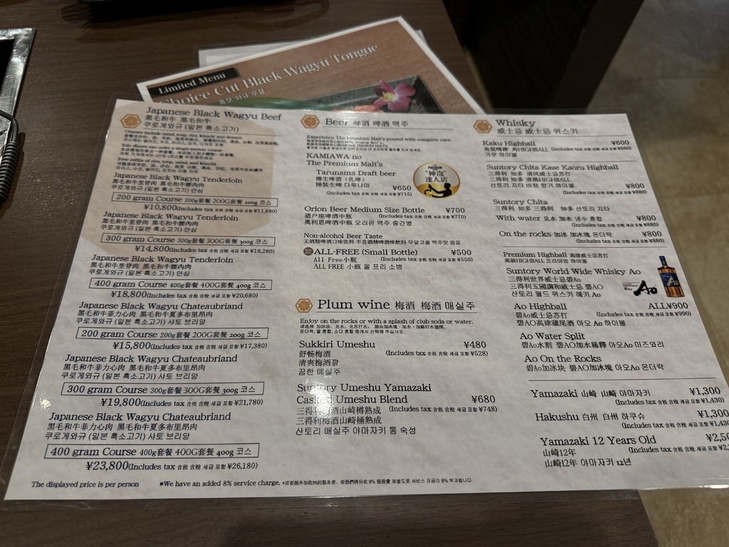 ▲在書店翻閱了許多想帶回台灣的雜誌,但怕燒烤味道濃厚,,決定隔天早上再來挑選兩本最喜歡的入手。隨後與阿祥相約在 ぶりあん ヒレ肉専門店 黒毛和牛炭火焼き 聚餐,一踏進店內就被炭火燒烤的香氣撲鼻而來深深吸引。這裡的白飯堪稱奇蹟,每一粒米都透著香甜,搭配現烤的牛肉與牛舌,真的是令人無法抗拒的人間美味。店內主打黑毛和牛的里脊肉與菲力心肉,根據不同部位和重量計價,讓人可以自由選擇滿足味蕾的極致享受。當晚我們毫不吝嗇地品嘗了最頂級的和牛,一頓80000日圓的晚餐,份量十足卻毫不油膩,讓人心滿意足。這真是一場無與倫比的饗宴,值得每一分花費!