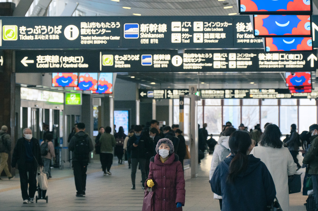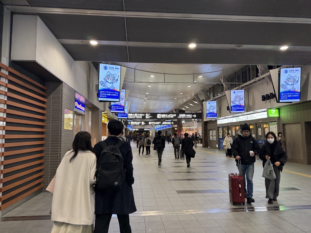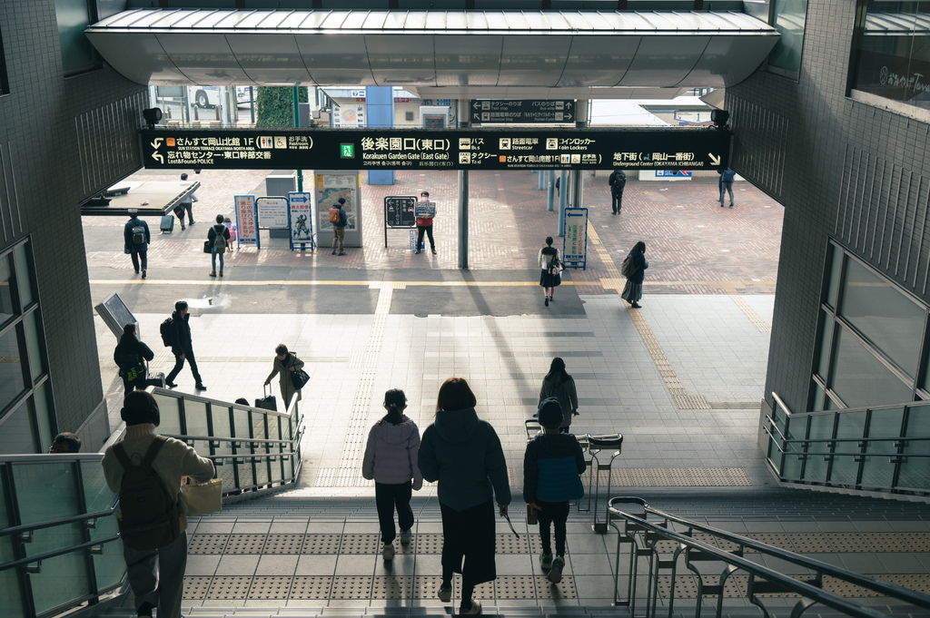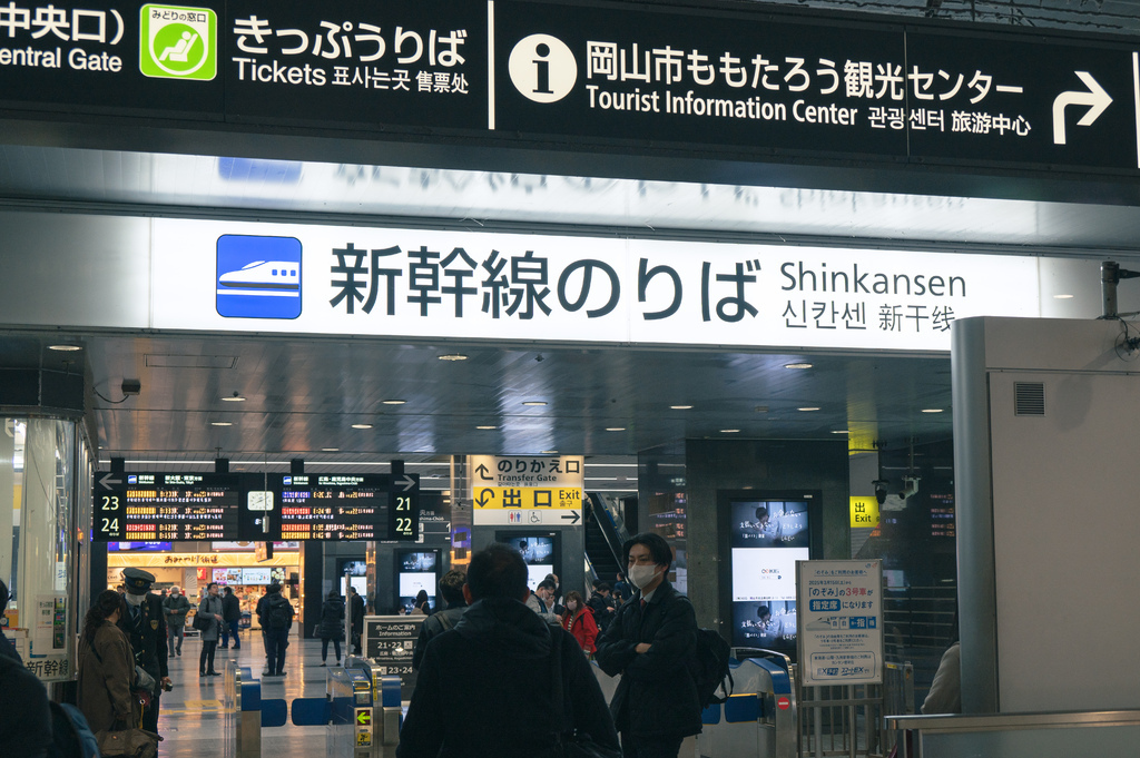 ▲中午回到岡山車站,我們選擇在車站內的商店街簡單用餐。帶著孩子旅行,餐食選擇總以方便為先,雖然沒有深入探索在地美食,但也享受在熱鬧車站裡的輕鬆片刻。飯後回旅店稍作休息,準備前往午後的行程——岡山神社,繼續我們的岡山散策。
