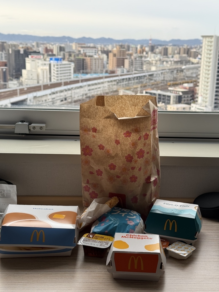 ▲岡山的第二天,才是真正展開旅程的開始。昨天下午才抵達,今天才算是完整感受這座城市的節奏。所住的 Via Inn Okayama 就緊鄰岡山車站,一早拉開窗簾,映入眼簾的是一列列進站的列車,彷彿翻開一本活生生的鐵道教科書,讓人捨不得移開目光。早餐選了日本的麥當勞,體驗一下在地版本的速食文化。點了一杯熱奶茶,結果送上來的是熱水加茶包,第一次看到這種喝法,雖然簡單,卻也帶點新鮮感。食物的味道跟台灣略有不同,但同樣好吃。從飯店走到麥當勞的途中,隨手拍了幾張清晨的街景,也觀察到岡山人早晨的生活樣貌。這樣的城市節奏,寧靜卻不失活力,是旅行最迷人的部分之一。