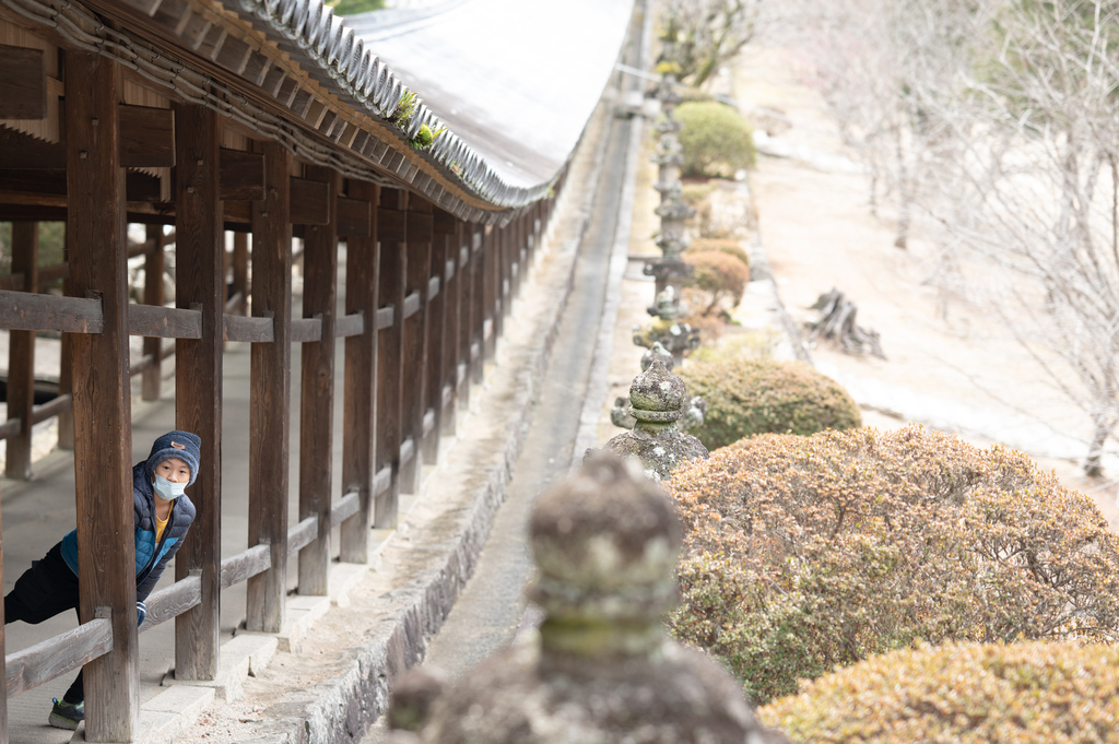 ▲來到吉備津神社,拝殿莊嚴寧靜,歷史氣息濃厚,我們繞行整個神社,感受古老建築與自然的交織,神聖氛圍令人心靜。沿著著名的廻廊一路前行,步道綿延、光影交錯,遠眺岩山宮時視野遼闊,神社依坡而建,環境幽靜如畫。宇賀神社與普賢院藏身於街角,氣氛清幽,細節處滿是歷史痕跡,像不經意闖入的祕密角落,格外令人著迷。最後踏上回程的小路,這樣的散步,穿梭在街弄裡、文化中與生活裡,是旅行中我最喜歡的節奏。