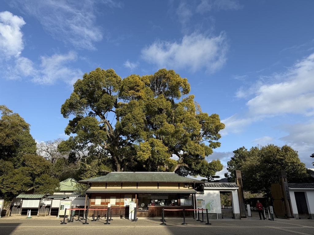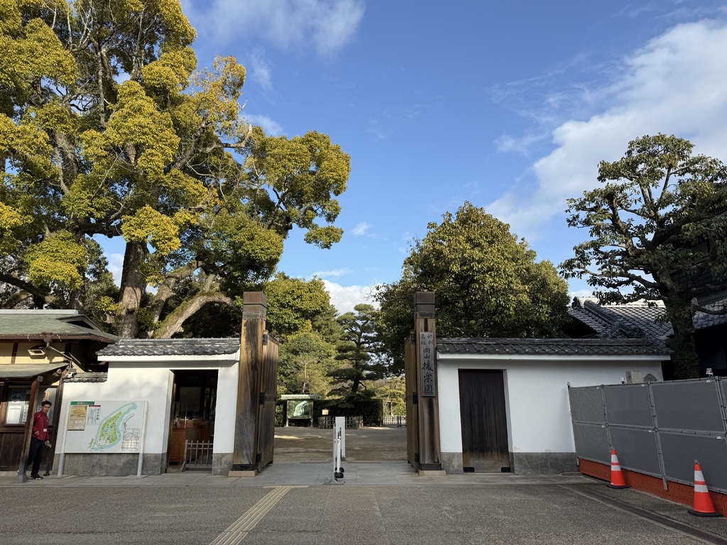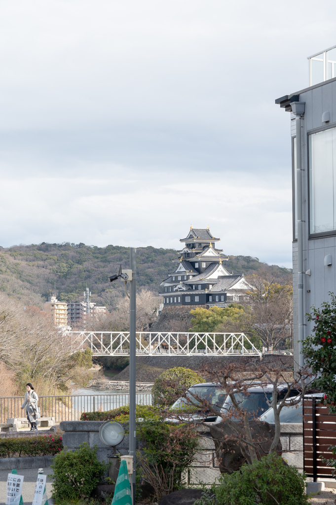 ▲從岡山神社沿著旭川河道漫步而來,終於抵達被譽為日本百大名城之一的「岡山城」,也因其深邃黑色外觀而稱為「烏城」。岡山城坐落於由多座小山丘組成的小高地上,四周被旭川環繞,形成壯麗的景觀。最初由武將宇喜多秀家所建,後來在豐臣秀吉的指導下,城堡周圍的護城河進行整備,使其更加堅固。今天,這座歷史悠久的城堡不僅展示了當時的軍事建築智慧,也是岡山的地標之一,吸引著無數遊客前來探訪。
