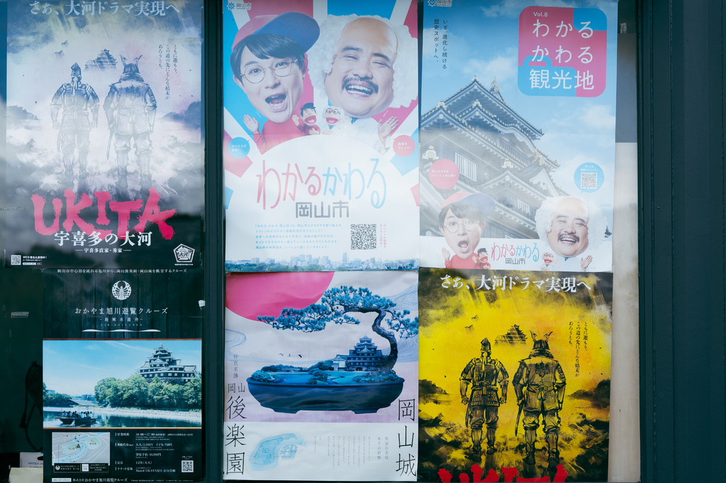 ▲第二天的岡山行程在不知不覺中走向尾聲。雖然錯過了後樂園的開放時間,沒能如願進園,但我們改在附近的商店街閒逛,意外發現了幾家復古感十足的老相機店與懷舊老鋪,每一扇窗戶後都藏著故事。晚餐則簡單買了熟食回旅店享用,一邊回味今天的點滴,一邊準備迎接岡山旅程的第三天。