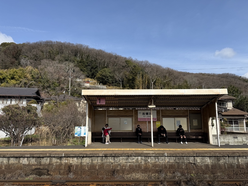 ▲今天的第一個行程是【吉備津神社】,從岡山車站出發,搭乘 JR「U 桃太郎線」往備中高松、總社方向,大約四站、15 分鐘的車程就能抵達「吉備津站」,下車後再步行約 10 分鐘即可到達神社。我們是在岡山車站 10 月台搭乘這條桃太郎線,雖然班次不多,但節奏悠閒,搭起來特別有旅人的感覺。