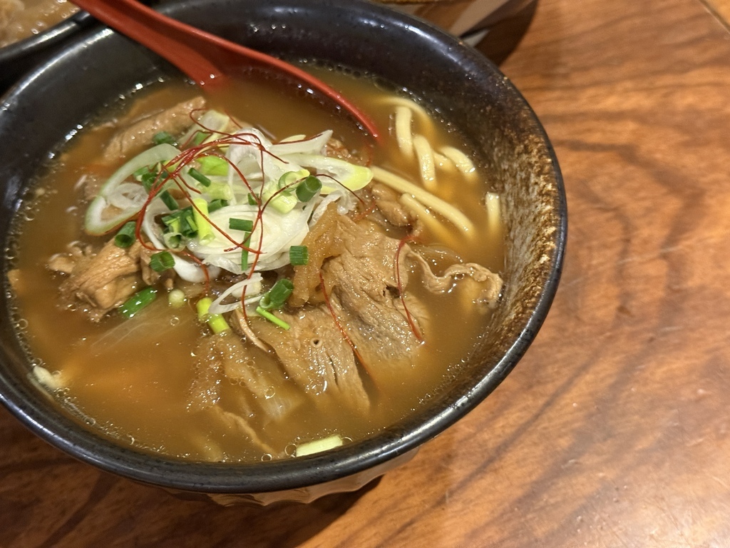 ▲燒肉湯麵,這碗湯麵一上桌就香氣四溢,紅燒風味的湯頭鹹香中帶有一點甜味,喝起來不油膩,反而十分順口。搭配大片燒肉和洋蔥,肉質軟嫩、洋蔥清甜,讓整碗湯頭層次更豐富。麵條飽足感十足,是一碗喝完湯也會覺得滿足的好麵。