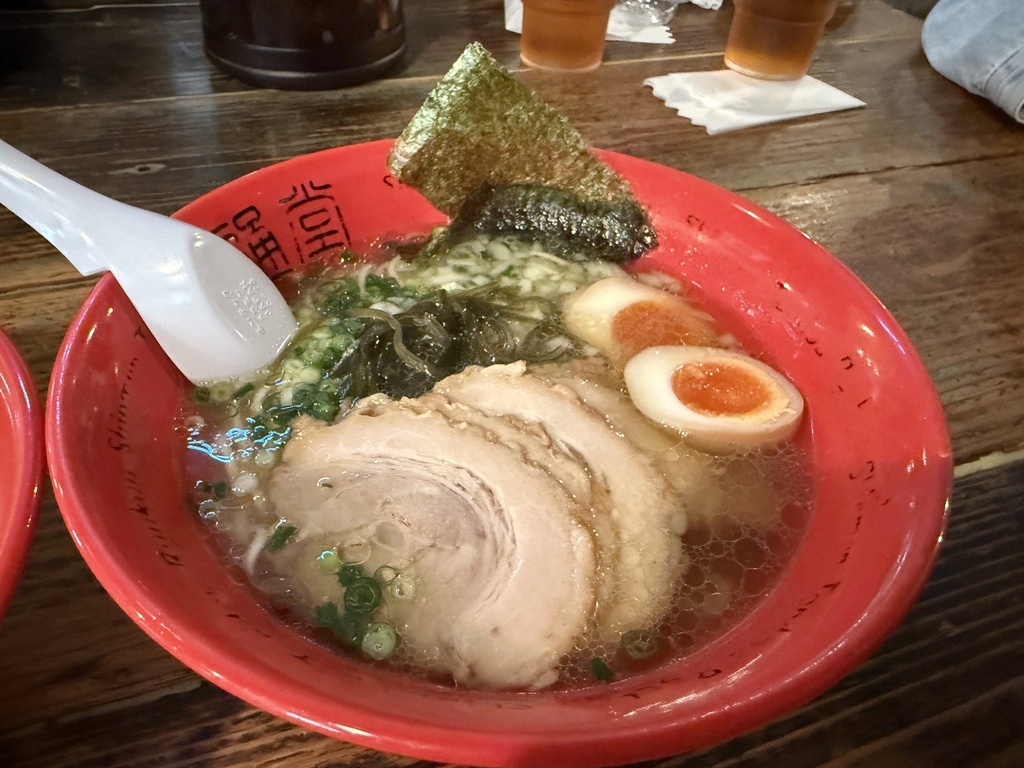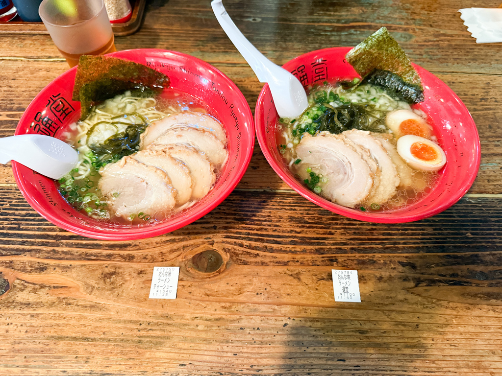 ▲叉燒肉增量拉麵(¥1090)、通堂拉麵(¥1100),當天我們點了叉燒肉增量拉麵和叉燒增量拉麵,湯頭偏鹹了一點,不過細直麵條煮得恰到好處,口感滑順彈牙。搭配焦香酥脆的海苔與濃郁的半熟蛋,層次感十足,一口接一口停不下來。整體來說,是一碗份量與風味都讓人滿足的拉麵。